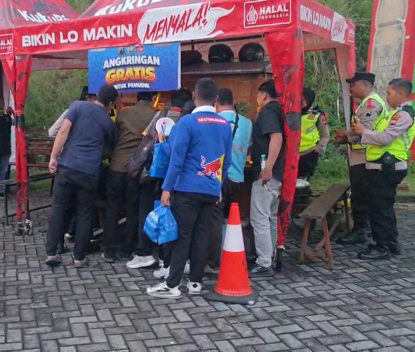 Polres Semarang Sediakan Angkringan Gratis untuk Pemudik di Rest Area KM 429 Tol Semarang-Solo.