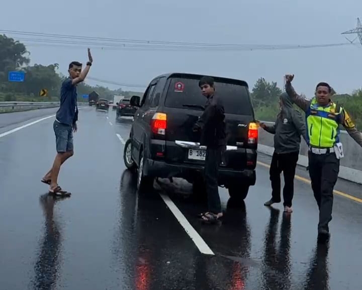 Mobil Pemudik Mogok di Tol, Kasat Lantas Polres Semarang Sigap Evakuasi Kendaraan.