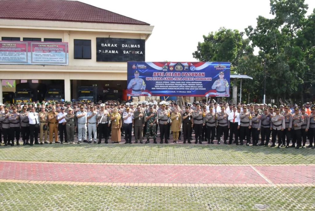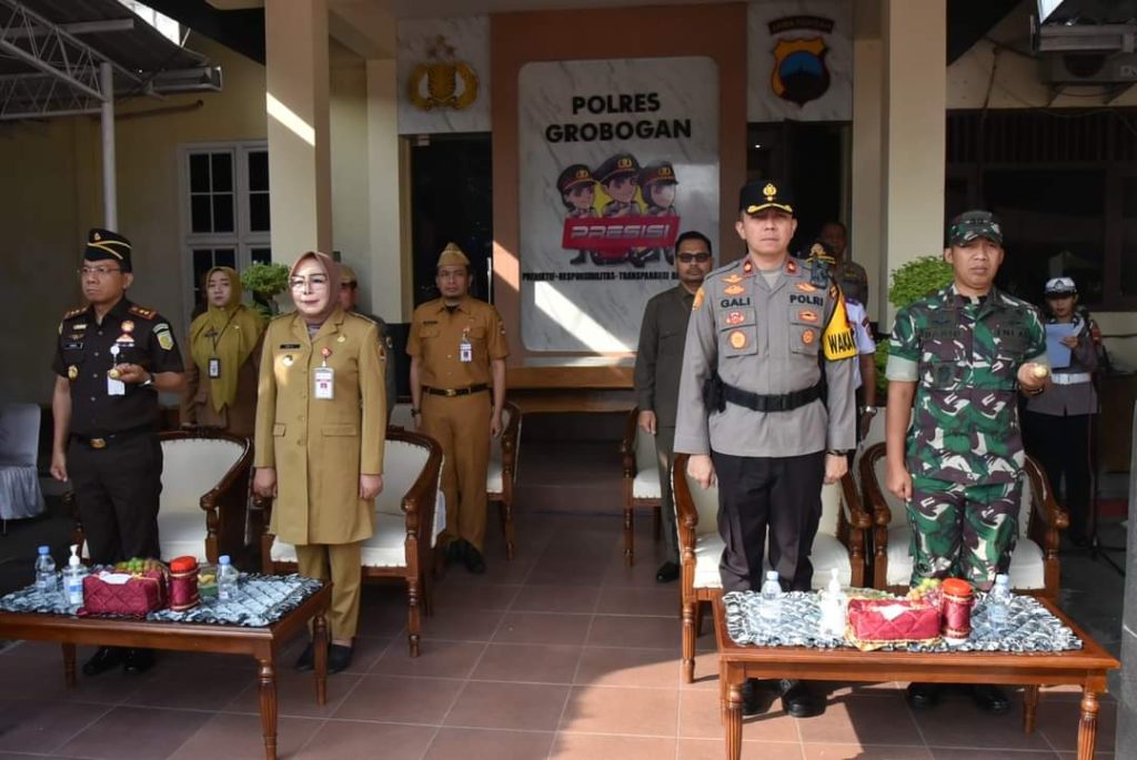 GROBOGAN, SerasiJateng.id – Dandim 0717/Grobogan Letkol Kav Barid Budi Susila bersama Forkopimda Grobogan menghadiri Apel Gelar Pasukan Ops Zebra Candi