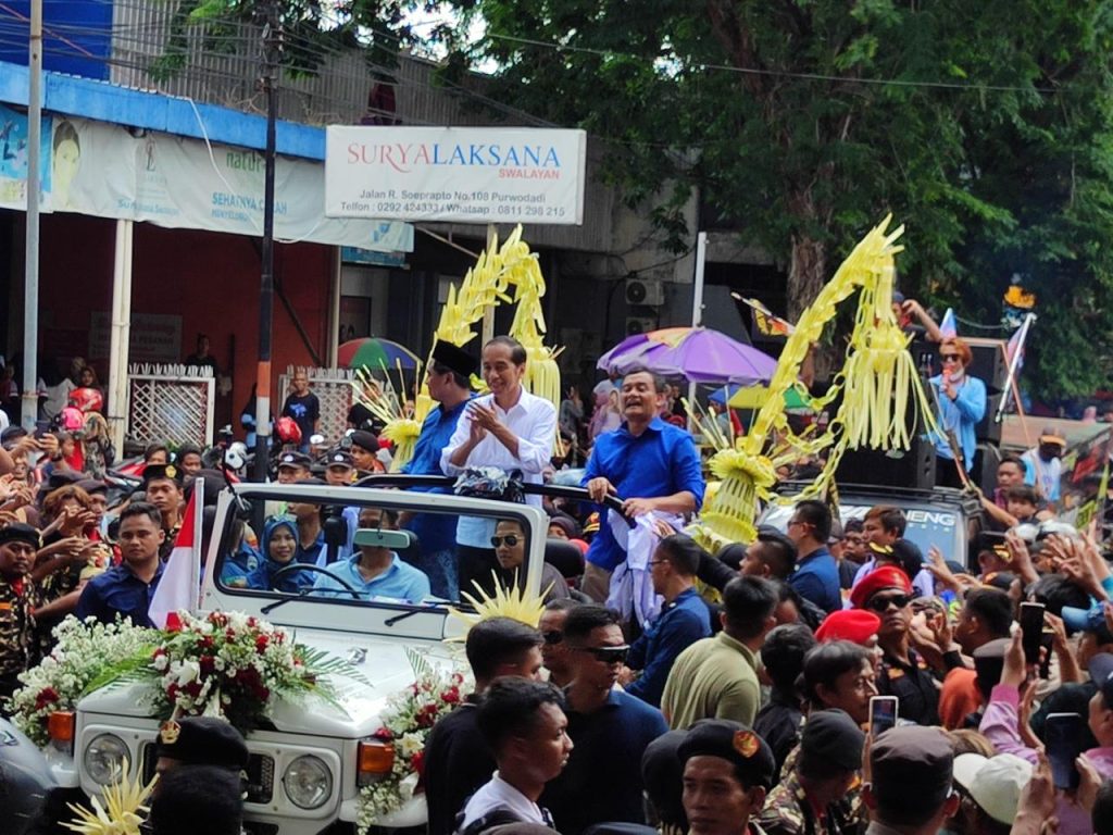 Ribuan Masyarakat Grobogan Padati Jalan, Sambut Jokowi Dan Cagub Jawa Tengah Ahmad Luthfi.