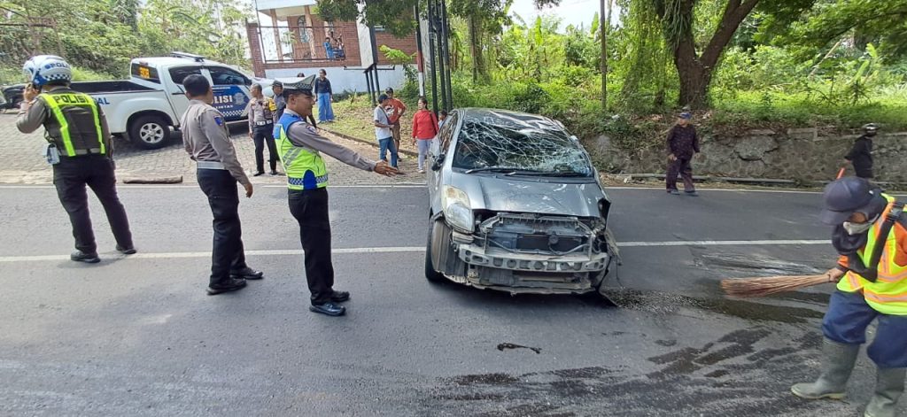 KAB. SEMARANG, SerasiJateng.id – Diduga akibat mengantuk, sebuah minibus Toyota Yaris warna Silver mengalami kecelakaan tunggal di tanjakan Slembu Kec.