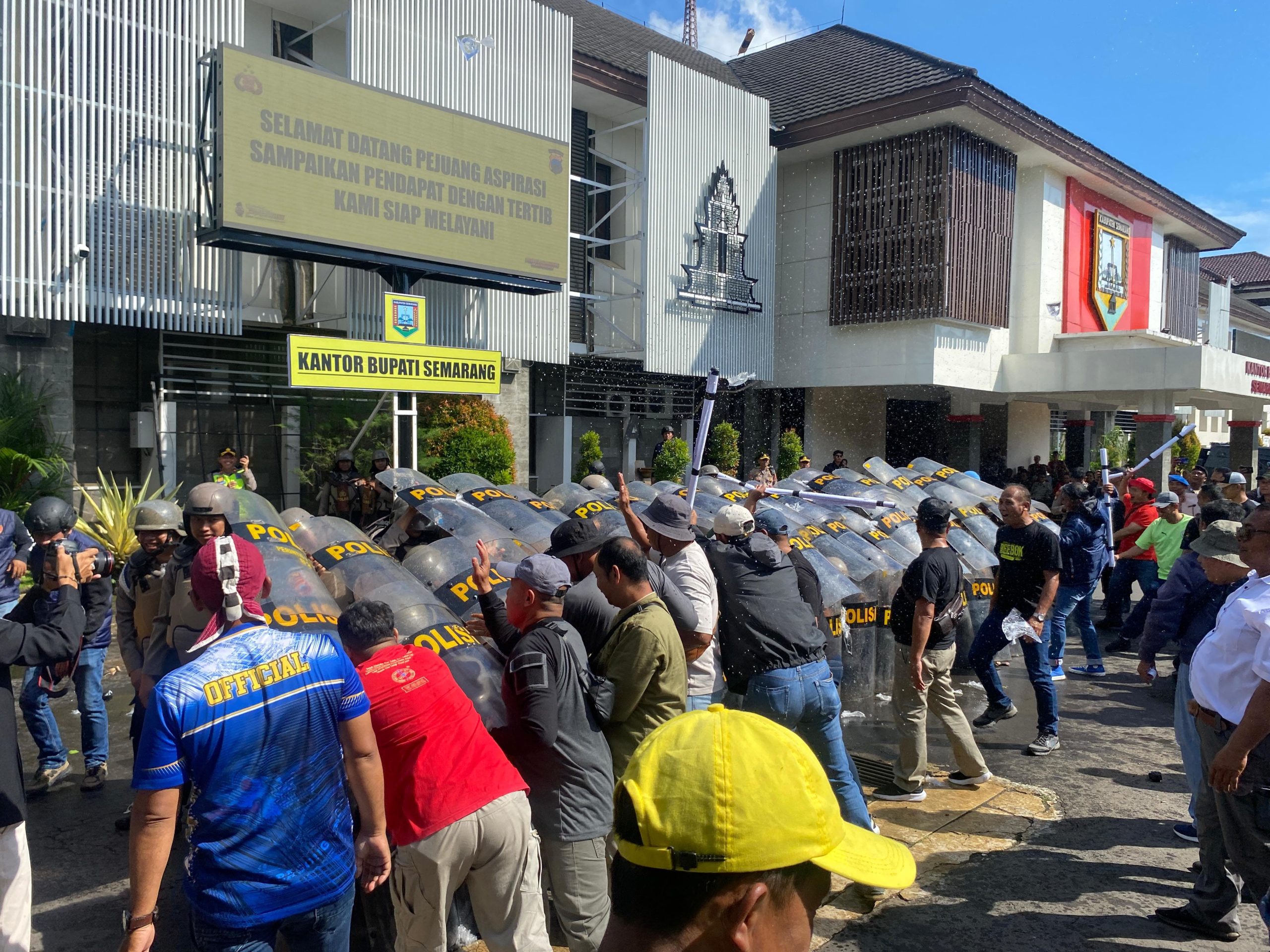 KAB. SEMARANG, SerasiJateng.id – Persiapan hadapi Kontijensi situasi Kamtibmas di wilayah Kab. Semarang, Kamis 23 April 2026 Polres Semarang menggelar simulasi Sispamkota. Dengan mengambil lokasi di kantor Bupati Kab. Semarang, dan disaksikan langsung oleh Bupati Semarang H. Ngesti Nugraha berikut perwakilan Forkopimda Kab. Semarang.