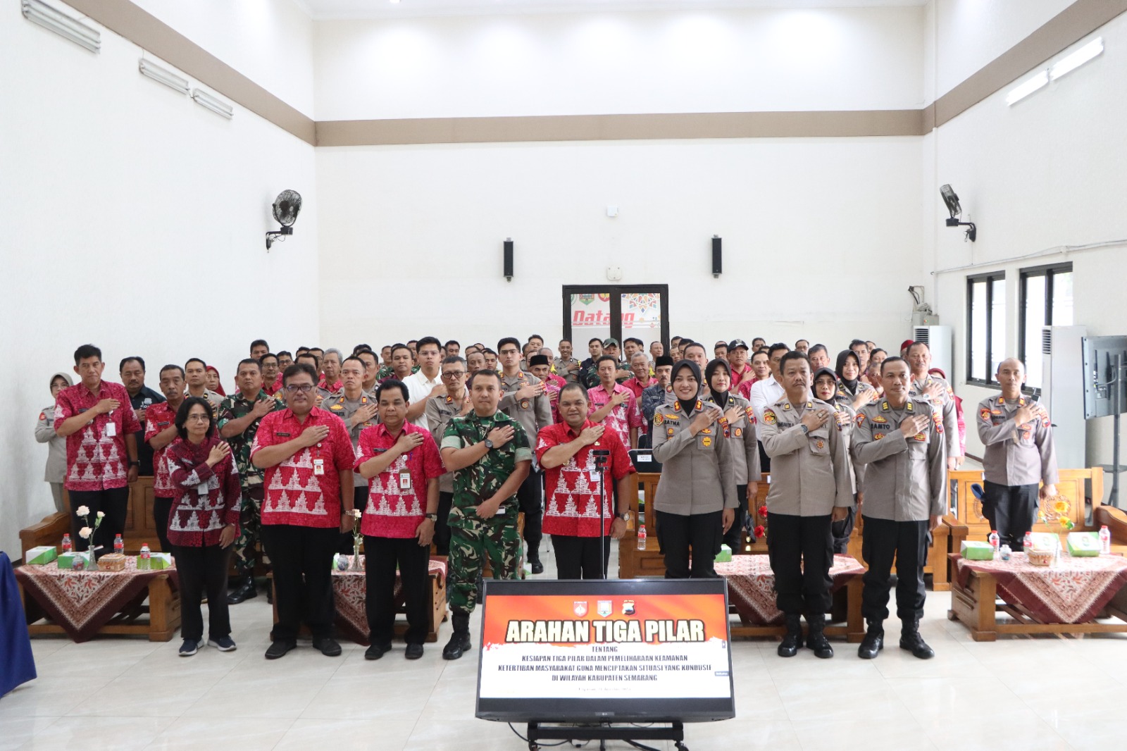 Dihadiri langsung 3 pimpinan unsur Polri, TNI dan Pemerintah Kab. Semarang yaitu Kapolres Semarang AKBP Ratna Quratul Ainy, Dandim 0714/Salatiga Letkol Inf. Guvta Alugoro Koedoes, dan Bupati Semarang H. Ngesti Nugraha, kegiatan ini juga dilaksanakan serentak di seluruh wilayah Kab. Semarang dengan menghadirkan Kapolsek, Danramil, Lurah atau Kepala desa Se Kab. Semarang yang hadir langsung maupun melalui jaringan Zoom Meeting.